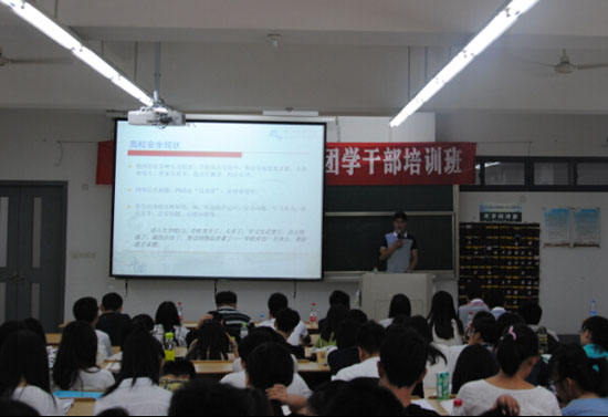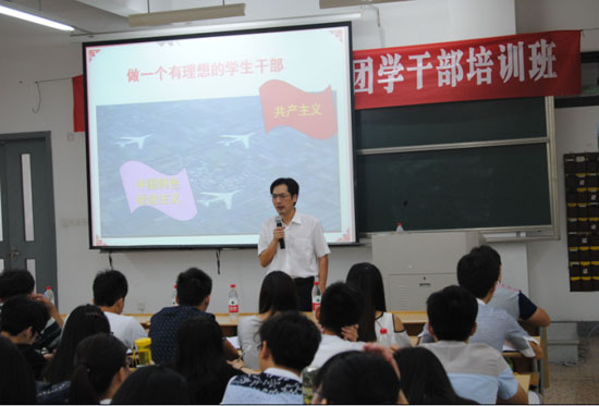 在南山综合楼A208举行2015年度团学干部培训班。团委学生会副部长以上职务成员、各班副班长以上职务成员参加培训。学院党委副书记史正东老师、文澜书院院务主任陈立彬老师、学院学生科副科长邱科强老师、成章书院院务副主任戴国芬老师以及学院辅导员从多角度、全方位对各位学生干部进行了系统培训。