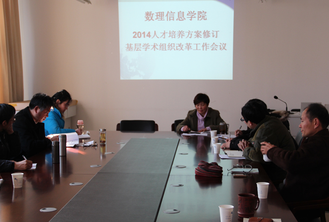 1月15日下午,学院在411会议室召开2014人才培养方案修订、基层学术组织改革工作会议,学院领导、各学科主任(副主任)、专业主任、督导及相关科室负责人参加会议。