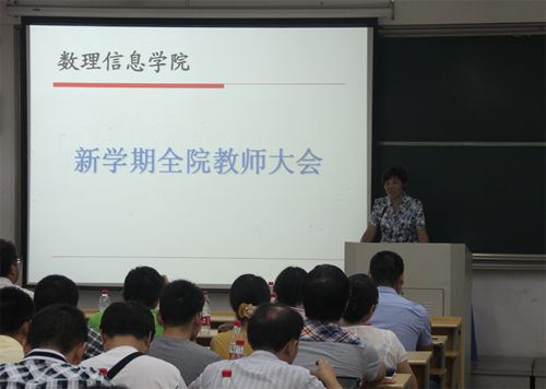 实际,结合党的群众路线教育实践活动的开展,要求全体教职工认真做好本职工作。她就课堂教学、专业调整、考研工作、科研工作和省重点专业建设等方面作了重点布置。最后对全院教职工的努力与付出表示了衷心感谢,希望大家新学期有新的精神面貌和新的成绩。