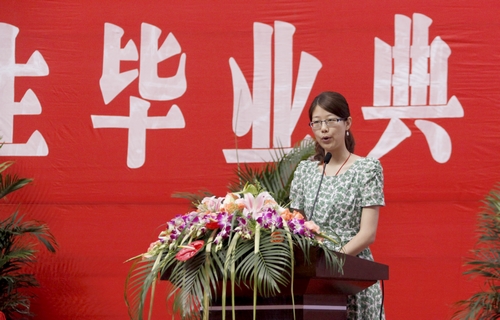 教育学院心理082班毛一旻同学的母亲张奇女士代表学生亲友发言,她衷心感谢学校对子女的悉心培养,感谢老师们的谆谆教导诲人不倦,感谢同学们的乐观向上团结友爱。“父母养育了你们,学校教育了你们,社会将成就你们”,她嘱咐学子们,无论是继续深造,还是就业、创业,都不要忘记身上的重任,用更加优异的成绩回报老师和母校。