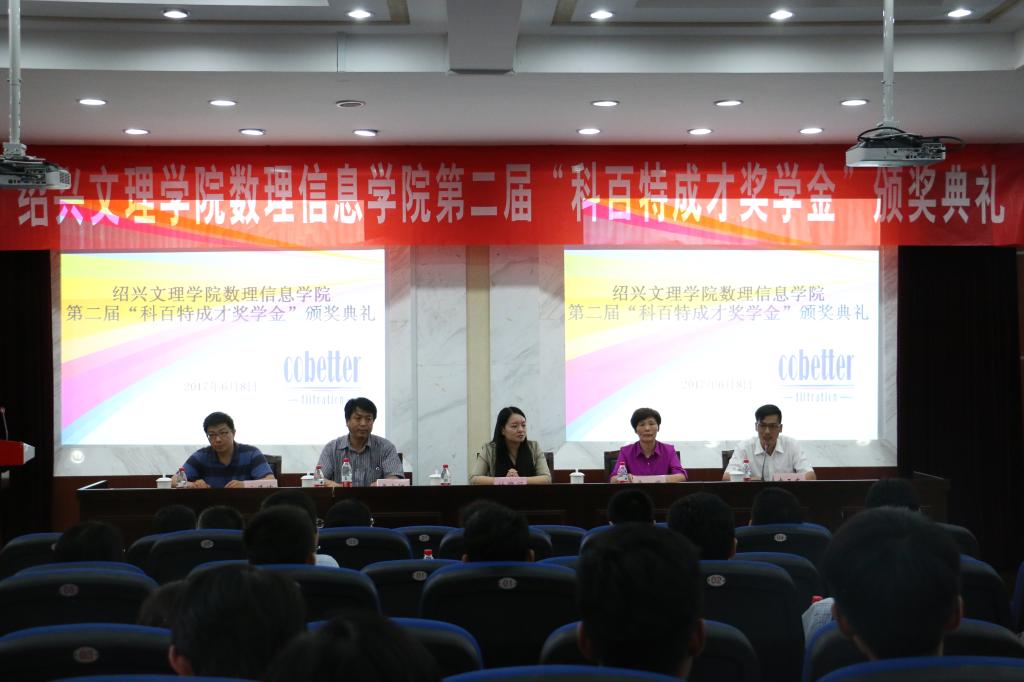 第二届“科百特成才奖学金”颁奖典礼在财贞楼二楼报告厅隆重举行。杭州科百特过滤器材有限公司人力资源经理付雅丽、学院全体党政领导班子成员、学科主任、专业主任、教工党支部书记、全体辅导员、班主任以及学生代表共180人参加典礼。典礼由学院党委副书记史正东主持。
