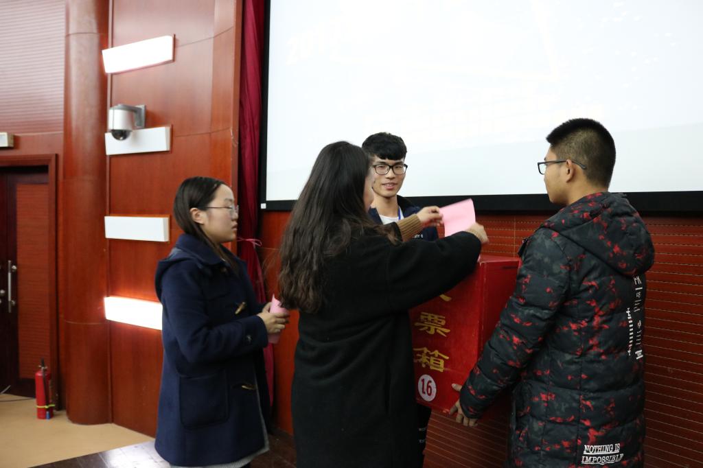 竞演结束后,主持人组织观众进行现场投票,工作人员上台展示投票箱后师生依次上台投票。在工作人员进入后台计票的同时,场内观众认真欣赏色花堂