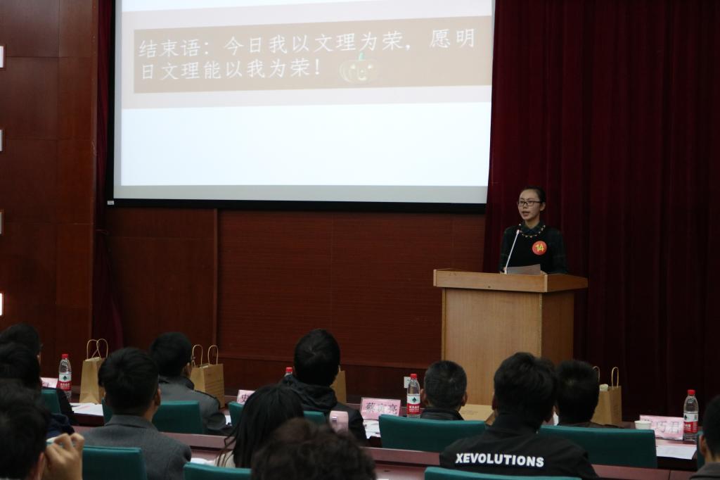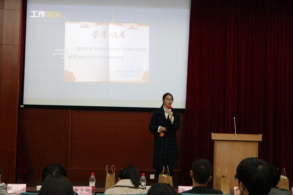 经过前期个人自主申报、班级推荐和学院资格审查等程序,本次“十佳大学生”评选共有19位来自不同年级和专业的候选人参选。会议伊始,主持人进行简单的开场介绍,并明晰了此次评选会的评选办法和投票规则。接着由各位候选人按顺序依次上台进行风采展示,短短的四五分钟时间,他们用无畏的勇气和饱满的热情向在场所有师生证明:他们足够优秀。而各具特色的演讲风格也赢得老师们的认可和观众们热烈的掌声。