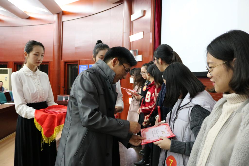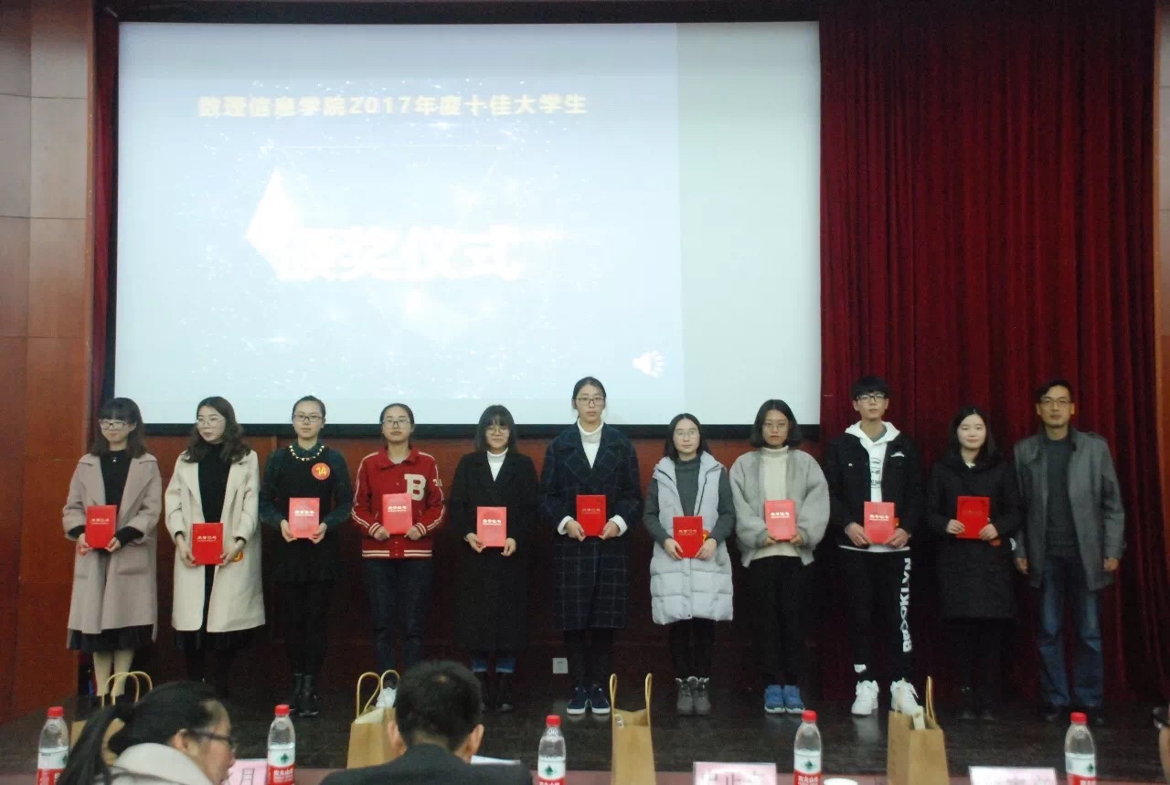 社团之一陶笛社南山分社表演。随后由杨哲老师公布根据评选会投票产生的荣获院十佳大学生称号的学生名单,他们分别是数学141班丁丹琦、数学142班郑盼盼、信计141班吴燕芳、数学151班胡倩倩、数学152班傅瑜佳、信计151班张华瑾、微电151班王明明、数学161班宋莹然、物理161班童一诺、电信161班严梓峻。