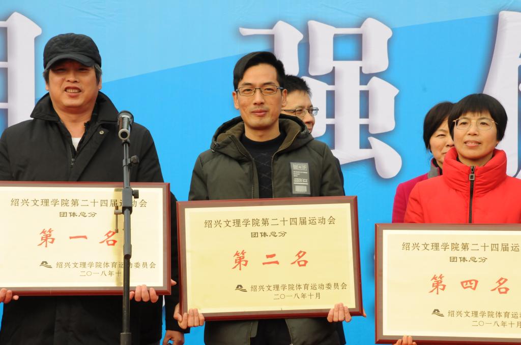 在开幕式上,学校领导为获得校第二十四届运动会团体总分前八名的代表队颁奖,色花堂