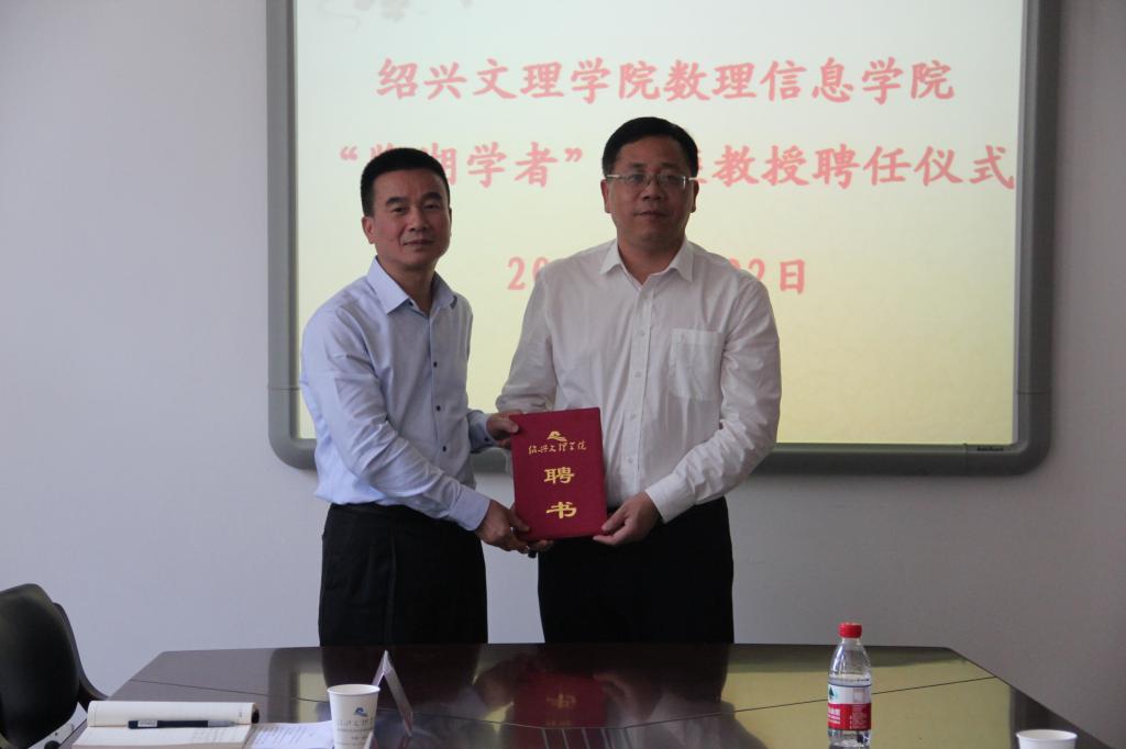 在1号楼317会议室举行了简单而隆重的聘任仪式。聘请香港城市大学数据科学学院副院长、博士生导师周定轩教授为我校“鉴湖学者”讲座教授。柳国庆副校长出席仪式。色花堂