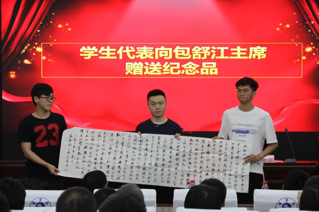 副院长梁奇锋教授宣读了《关于表彰第四届“科百特成才奖学金”获得者的决定》。杭州科百特过滤器材有限公司包舒江主席为第四届“科百特成长奖学金”一等奖获得者刘晓辉,二等奖获得者李国定、翁天恒、杨振华,三等奖获得者蓝樟生、王明明、梁毅、郦颖蕾、赵钢和叶小倩等10位获奖同学进行了颁奖。同时,获奖学生代表刘晓辉和李国定向包舒江主席赠送了纪念品以示感谢。