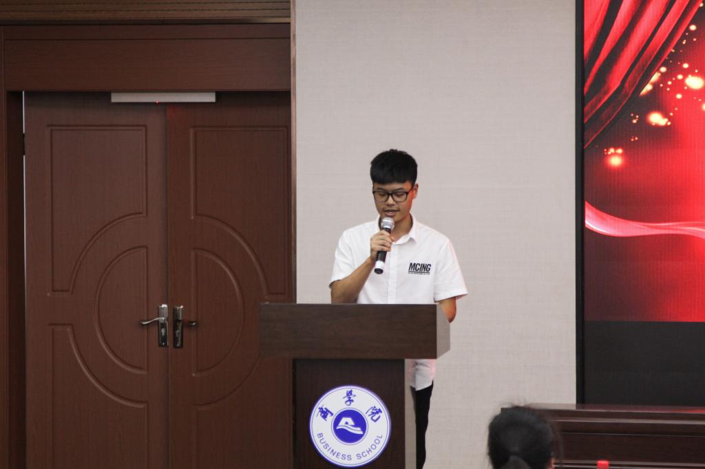 考取复旦大学研究生的刘晓辉和2016级考研学子董建艇依次作为学生代表上台发言。刘晓辉分享了他大学四年求学经历,积极参加各类大赛,获得很多成就,但仍觉得自己做得不够,所以决定考研。那段时光也是他最难忘的日子,但是他不断坚持,挑战自我,最终也没有辜负自己,考上了理想的学校。董建挺代表2016级考研学子分享了他对考研的认识:考研是一个不断进步的平台。同时也感谢学院不断完善考研的环境和氛围。在学校积极培养应用型人才和研究生人才的方针指引下,他鼓励我们不断成长、奋发成才,同时也告诫我们考研要心态放平,不骄不躁。两位同学都感谢了科百特公司的慷慨捐赠,也对学院的培养表达了自己的感激之情。
