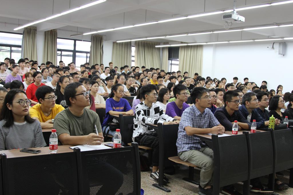 各专业基本情况和学院五大特色进行详细介绍和分析。他对全体2019级新生提出六点希望和要求:第一,修德求真,方向比努力更重要;第二,自我规划与时间管理,做长远规划,定阶段目标,赢在执行;第三,多参加学科竞赛和社团活动;第四,鼓励参加班团干部竞选,培养团队意识、大局观念;第五,内心强大,主动沟通;第六,享受多彩大学生活。