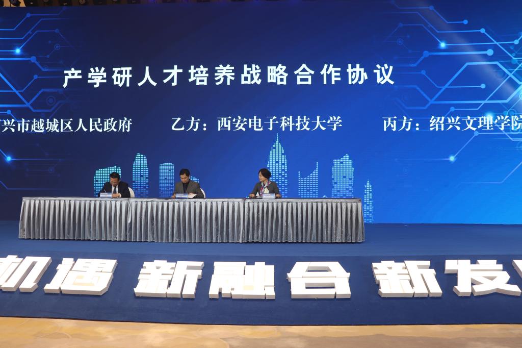 上午的开幕式上,校党委副书记郝敬习与中共绍兴市越城区委常委、常务副区长何浩挺,西安电子科技大学微电子学院副院长刘帘曦共同签署了产学研人才培养合作协议。三方坚持“优势互补、资源共享、互惠双赢、共同发展”原则,开展联合培养人才、共同科学研究、共建创业创新基地等方面合作,提升绍兴集成电路专业技术人才的培养质量,为绍兴集成电路企业培养更多高素质的应用型人才,助力绍兴集成电路产业快速发展,创造更大的经济效益和社会价值。