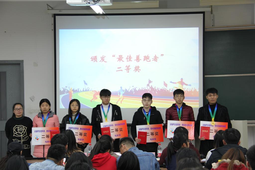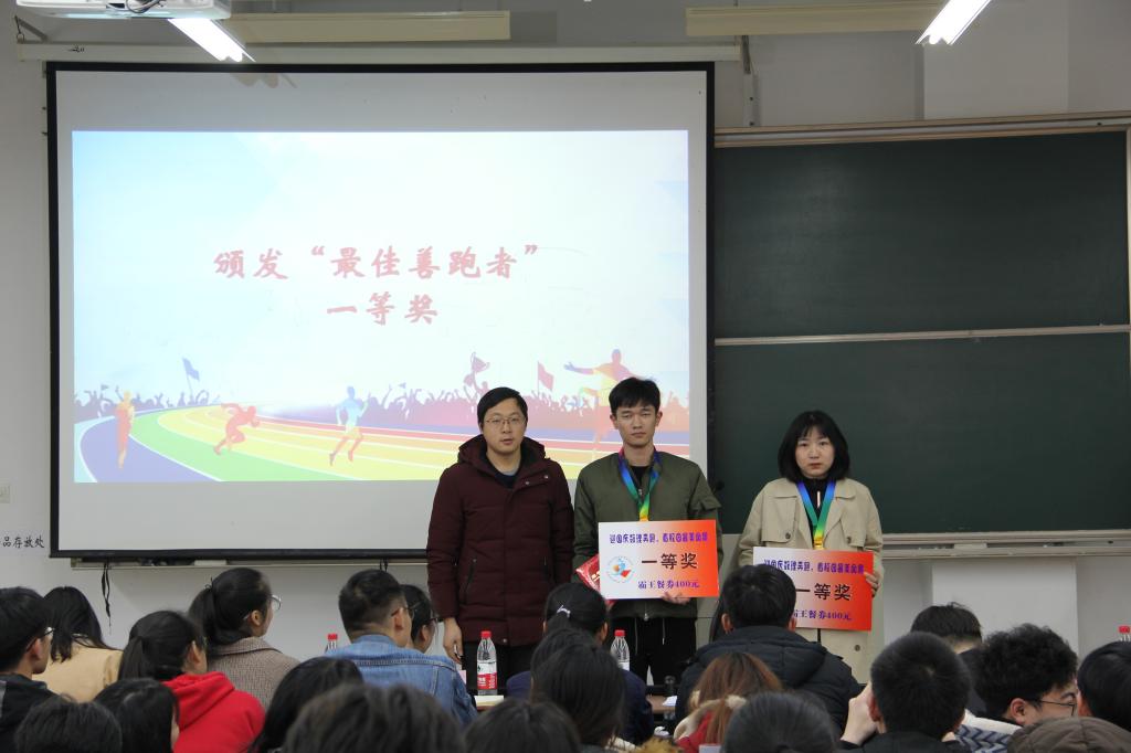 分团委书记潘丽华老师宣读获奖名单,对在跑团活动中表现突出的佼佼者予以表彰奖励,并赋予他们“最佳善跑者”的称号。男生排名第一的同学打卡52次,累计奔跑里程数高达124.93公里,女生排名第一的同学打卡51次,累计奔跑里程数高达231.52公里!多名同学打卡次数超过30次,获奖同学不仅有来自色花堂