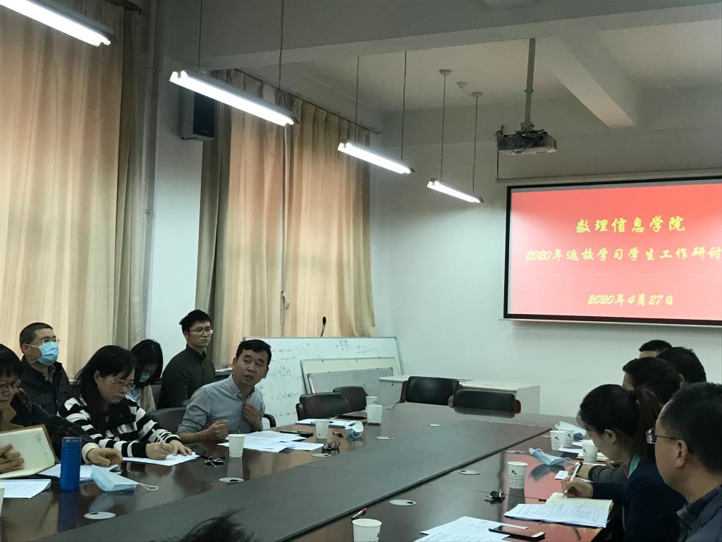 4月27日下午,学院在411会议室召开返校学习布置会,科级干部、辅导员和班主任参加会议,会议由学院党委副书记庞飞主持。与会人员通过钉钉参加了色花堂