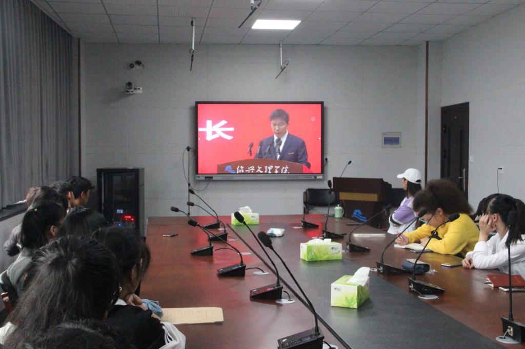 在南山1号楼会议室和2号楼教室设分会场组织观看,学院领导、新生班主任、辅导员以及全体分会场新生通过直播形式观看。