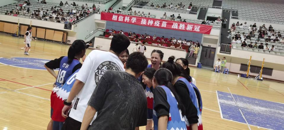 鲍晗露:2019年我第一次参加校篮球赛,当时还是3v3的比赛。全校20支女篮队伍,数理占了三个,最后却是靠着规则,靠着积分的累加,拿到了第三名。2020年,疫情之下,校赛未曾举办,白白一年失去了比赛,送走了一批学姐。2021年,依旧是3v3的比赛,女篮分出了两支队伍。这一次,规则的更改意味着不可能再通过19年的方式获得前面的名次,最后我们凭借实力获得了第三名。2022年,比赛改成了5v5,女篮以一支队伍的形式参加了比赛。