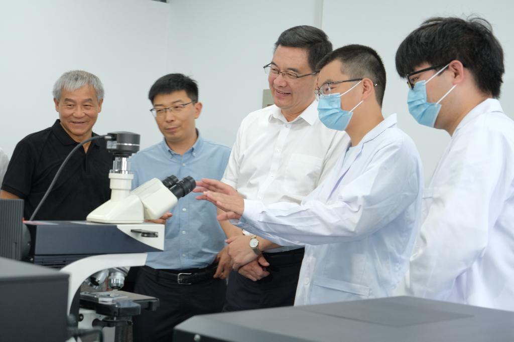 7月14日上午,绍兴市委书记盛阅春一行来我校调研微机电系统浙江省工程研究中心建设发展情况。盛阅春实地踏看了微机电系统浙江省工程研究中心研发场地、制造及检验检测设备,不时听取学院和中心负责人汇报,与高层次人才亲切交流,了解中心的研究近况。调研中,国家级专家张维加教授介绍了他最新的研究成果—基于无损传感的黄酒品质检验检测技术等。工程研究中心首席科学家、我校特聘教授王跃林向盛阅春汇报了中心的研究概况并介绍了中心全力配合绍芯实验室建设的相关情况。