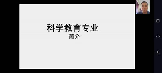科学教育(师范2)专业主任黄晖老师主要介绍了科学教育专业的前景。黄老师指出,本专业主要致力于培养优秀的科学老师,师资优越,专业实力强,注重教学技能的培养,与优秀校友联系密切而广泛。接着,黄老师谈论了他对科学教育专业的理解:科学教育的目标是培养知识面宽,能力强、素质高,富有时代特征、探究精神和实践能力的基础教育领域的应用型、复合型专门人才,希望大家朝着这个方向努力充实自己。