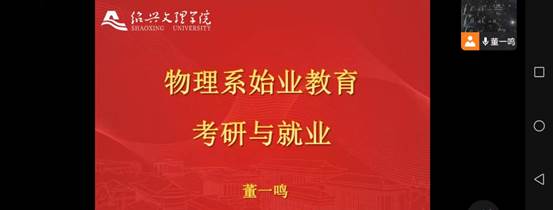 物理学专业以线上形式召开考研专题讲座,考研导师组组长董一鸣老师首先介绍了物理系就业率高、考研录取率高的特点,鼓励同学们积极考研。接着,董老师为同学们介绍了考研的基础知识,并从专业优势和导师团队优势等方面介绍了物理系的考研优势。最后,董老师为同学们树立了考研的目标:扎实打好基础,积极参加竞赛。相信同学们在董老师的鼓励下,一定能脚踏实地,扬帆起航!