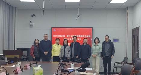 基本情况,包括党建引领学院发展、人才队伍建设情况、开设的专业以及有关合作需求等,并重点介绍了应用统计学专业的建设情况和专业特色。何晓红副局长介绍了绍兴市统计局的情况,包括数据库建设和平台建设情况、以及绍兴市统计学会的情况。