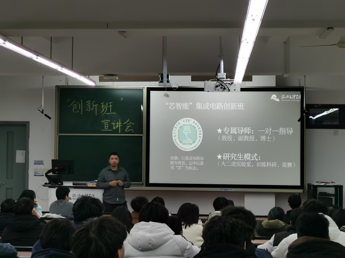 在南山6号楼A-106举办了首届集成电路“创新班”招生宣讲及学业规划交流会,面向全校理工类大一学生。本次宣讲会由“创新班”首席班主任张维加教授主讲,副院长黄玲娣、学工书记郑雅铭以及专业相关教师出席了此次活动。