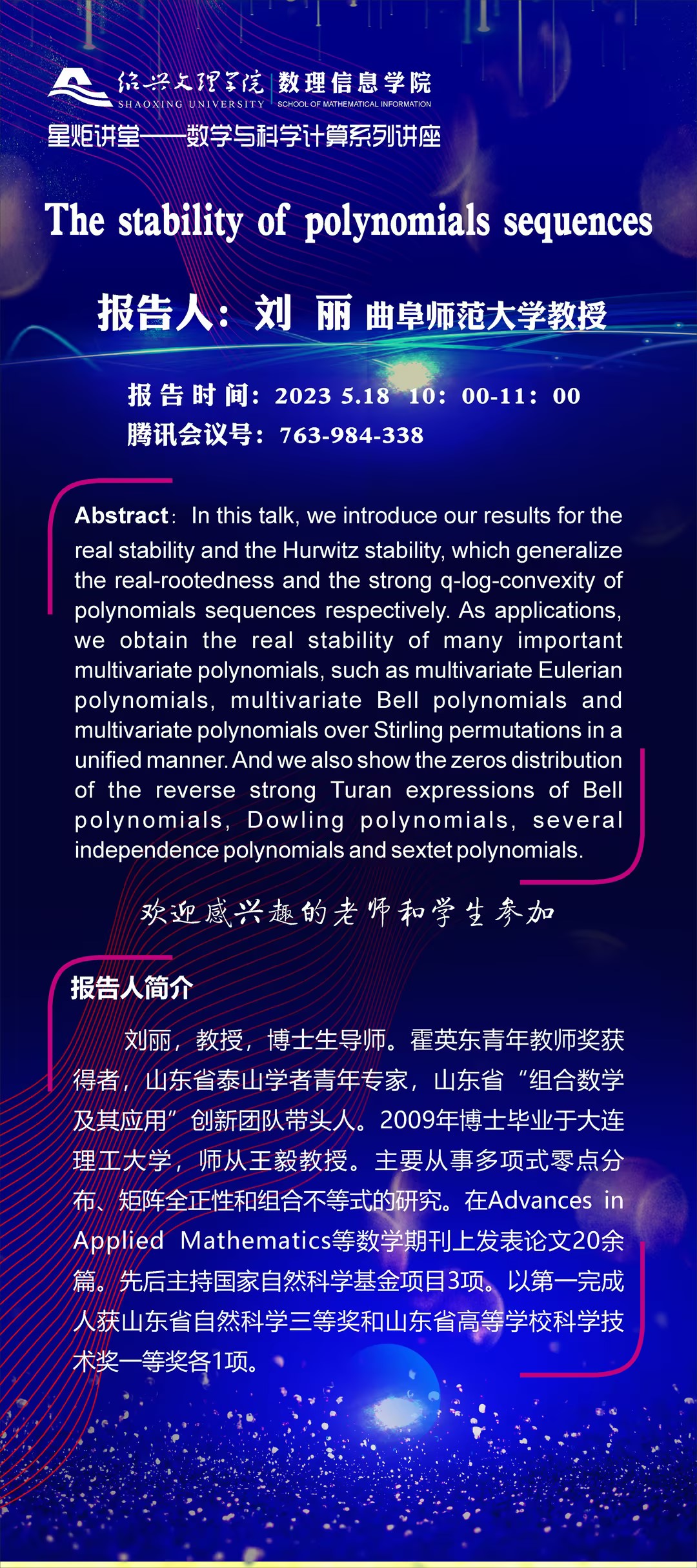 曲阜师范大学 刘丽教授:The stability of polynomials sequences