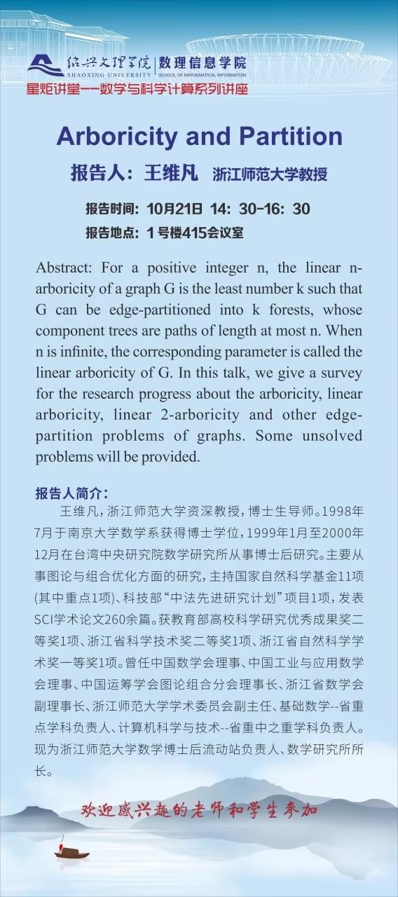 浙江师范大学 王维凡教授:Arboricity and Partition