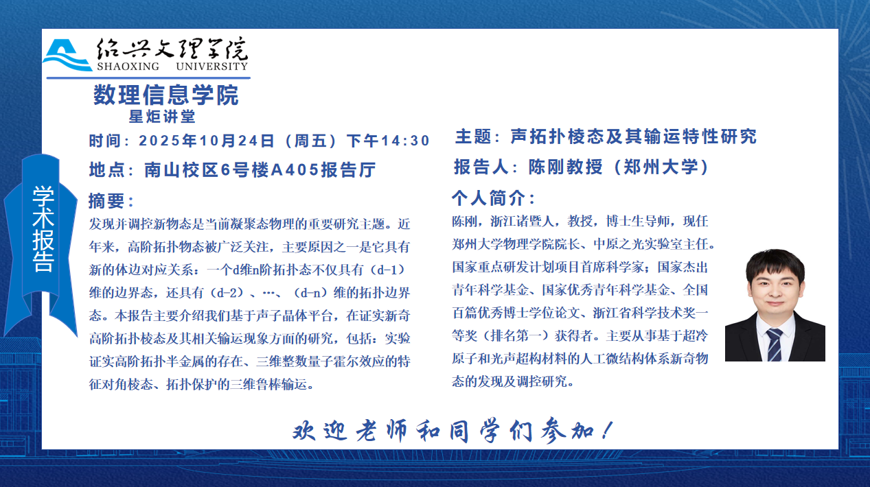 郑州大学 陈刚教授:声拓扑棱态及其运输特性研究