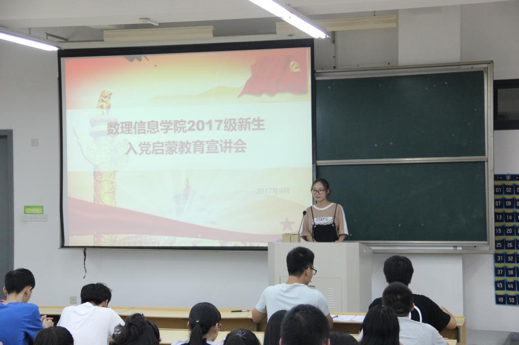 在南山综合楼A206、A207召开2017级新生入党启蒙教育宣讲会,旨在普及党的基本知识,吸引更多优秀学生向党组织靠拢,壮大党的队伍。本次大会由信息与计算科学专业学生党支部联系人厉男男和电子信息工程专业学生党支部副书记王靖杰分头主持。