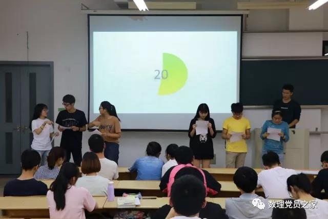 最后是抢板凳的轻松游戏时间,以音乐开始为基准,每组淘汰一个人,淘汰出的六个人每三个人为一小组进行诗歌朗诵。在最后富有爱国情怀的朗诵中,本次学习沙龙也接近了尾声,每位选手在游戏中学习,学习中进步,对入党和党的精神有了更深入的认识。
