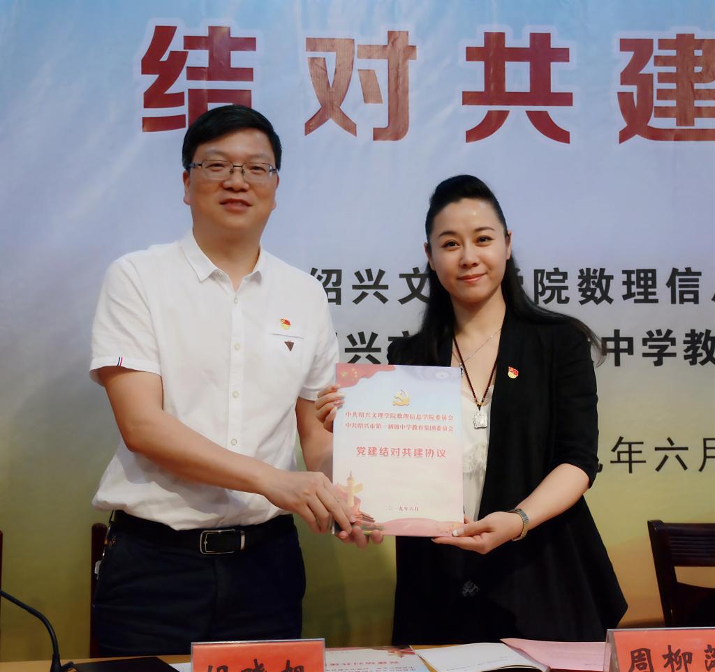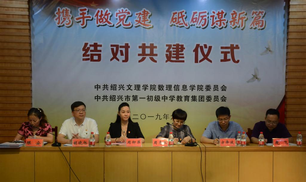 信息学院委员会与中共绍兴市第一初级中学教育集团委员会在绍初教育集团报告厅隆重举行党建结对共建签约仪式。越城区教体局党工委副书记、副局长周志红,色花堂