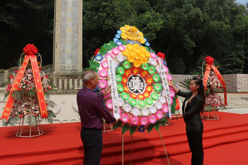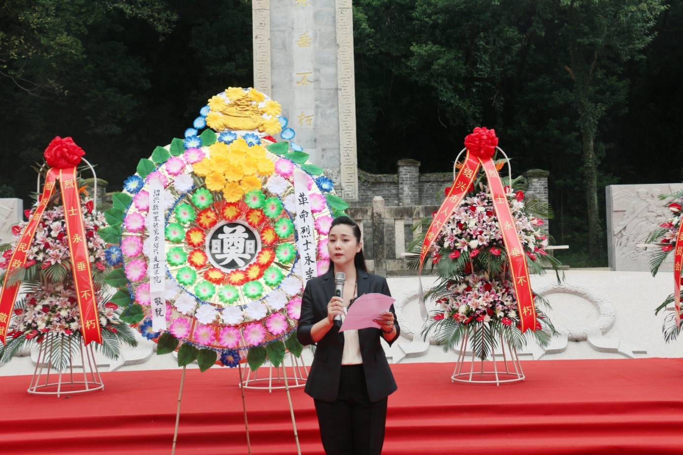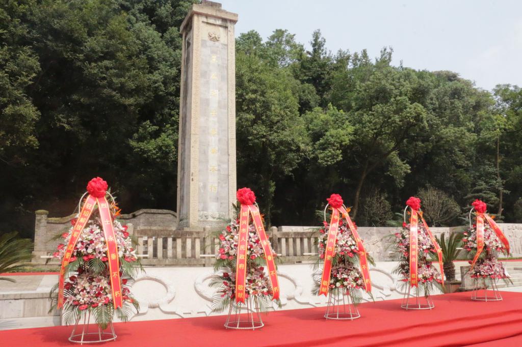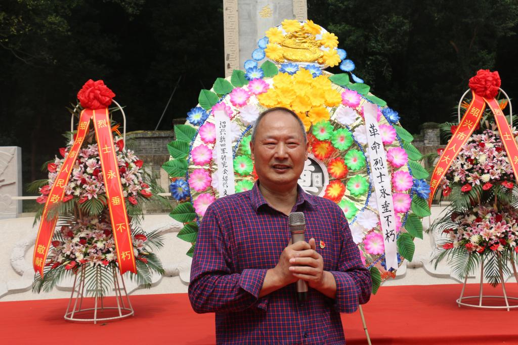 进行的第一项议程是向烈士致敬默哀,在肃穆的气氛中,全体人员整齐静立默哀,向烈士纪念碑三鞠躬。礼毕,由新四军研究会会长韩茂仁、色花堂