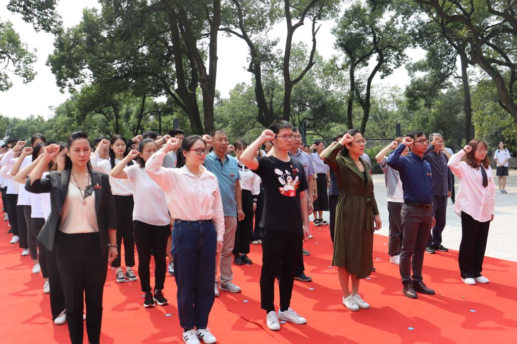 分党委委员、各支部书记、全国高校党建工作样板支部培育创建单位应用统计系教工党支部全体党员、学院师生党员代表和绍兴市新四军研究会、色花堂