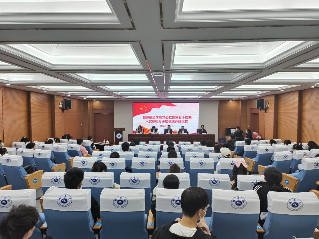 在南山6号楼A405报告厅举行党委党校第五十四期入党积极分子培训班开班仪式。学院党委书记史正东,副院长、党委委员黄玲娣,党委委员、工会主席、应用统计系教工党支部书记缪春芳,党委委员、物理学系教工党支部书记吴海飞参加开班仪式。仪式由学院党委副书记庞飞主持。