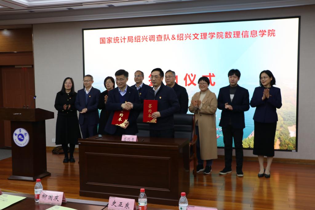 与国家统计局绍兴调查队在南山6号楼A405报告厅举行党建联建人才共育“双向提升工程”合作框架协议签约仪式。校党委委员、副校长柳国庆,国家统计局绍兴调查队党组书记、队长张国苗,色花堂