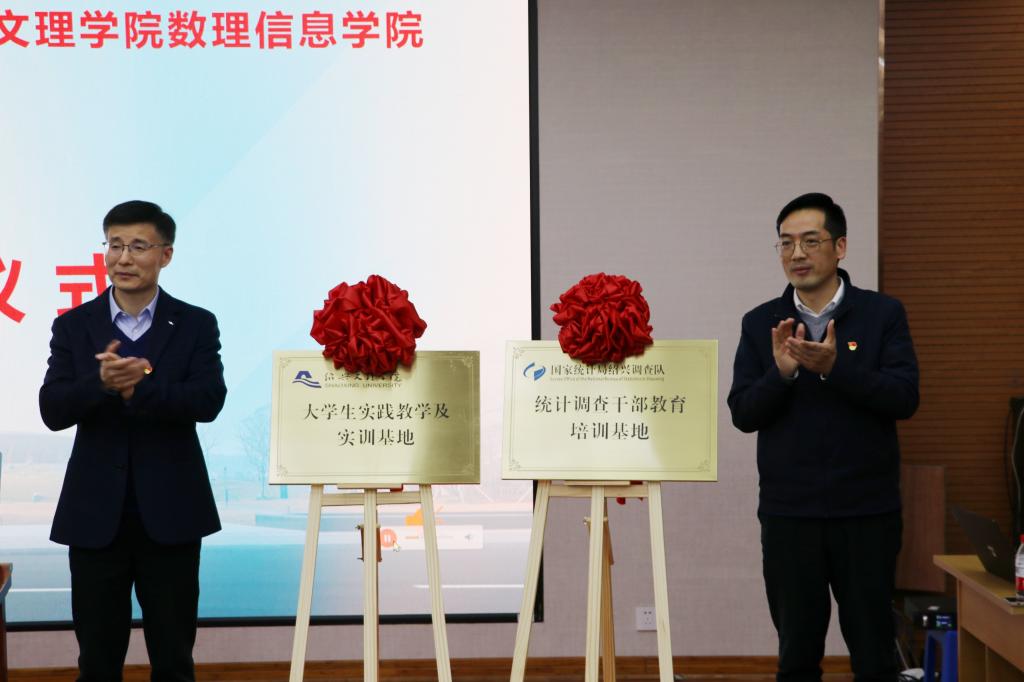 史正东与张国苗代表双方签订党建联建人才共育“双向提升工程”合作框架协议,并分别为“大学生实践教学与实训基地”和“统计调查干部教育培训基地”揭牌,色花堂