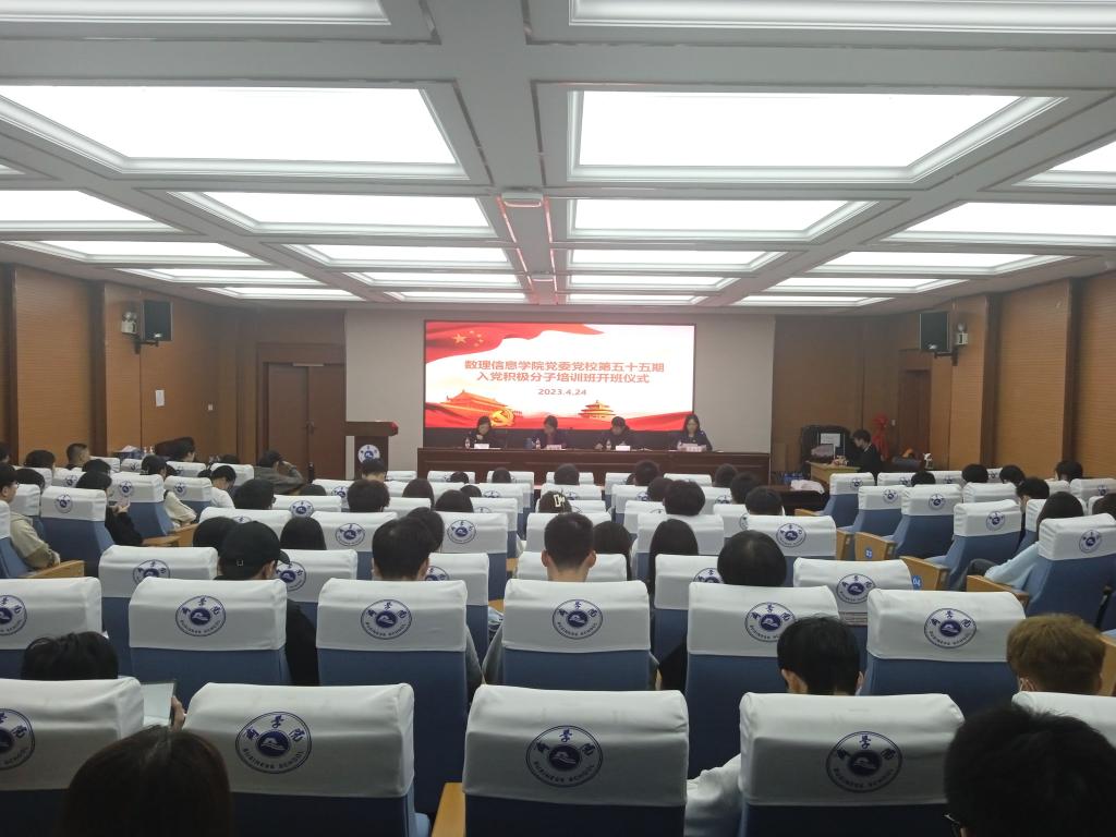 在南山6号楼A405报告厅举行党委党校第五十五期入党积极分子培训班开班仪式。学院党委委员、副院长黄玲娣,党委委员、副院长窦卫东,党委委员、工会主席缪春芳参加开班仪式。仪式由学院党委副书记郑雅铭主持。