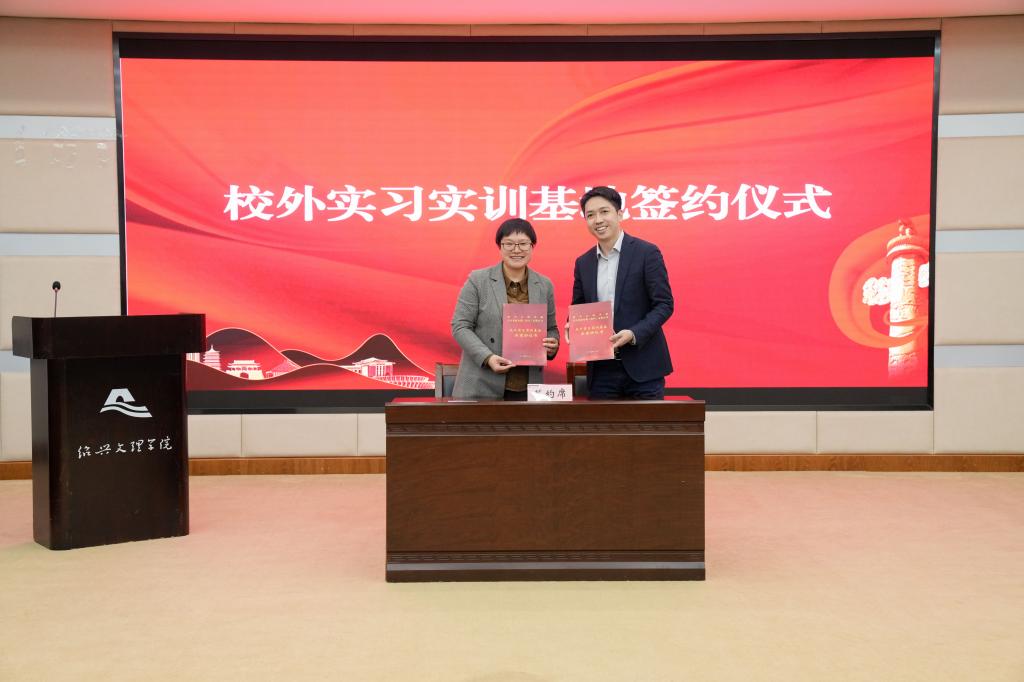 党委委员、副院长黄玲娣与吴斌签订校外实习实训基地协议。色花堂