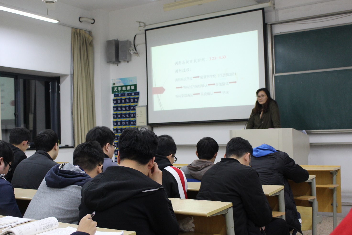 在南山综合楼C206召开了关于“2018届考研复试之如何做好调剂”专题讲座。本次讲座由电子信息与工程考研团队导师组组长于梅主讲,辅导员汪秋月老师主持。当晚参与讲座的是此次进入国家线的70名14级数理考研学子和感兴趣的准备考研学子。