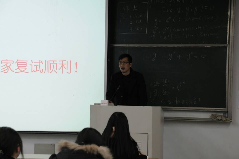 讲座的最后,院党委副书记史正东作总结发言,他首先对今天的主讲人姚博老师表示了感谢,同时表扬了数理14级考研学子的努力,也提出了几点要求:一是积极主动,集中精力在考研的最后环节即复试环节做好相关复试工作;二是调整心态,统筹协调安排近期时间和复习科目,最大效率得提高复习效果;三是掌握方法,取得成功,因为考研复试是综合能力的较量。最后,史书记祝愿大家心想事成!