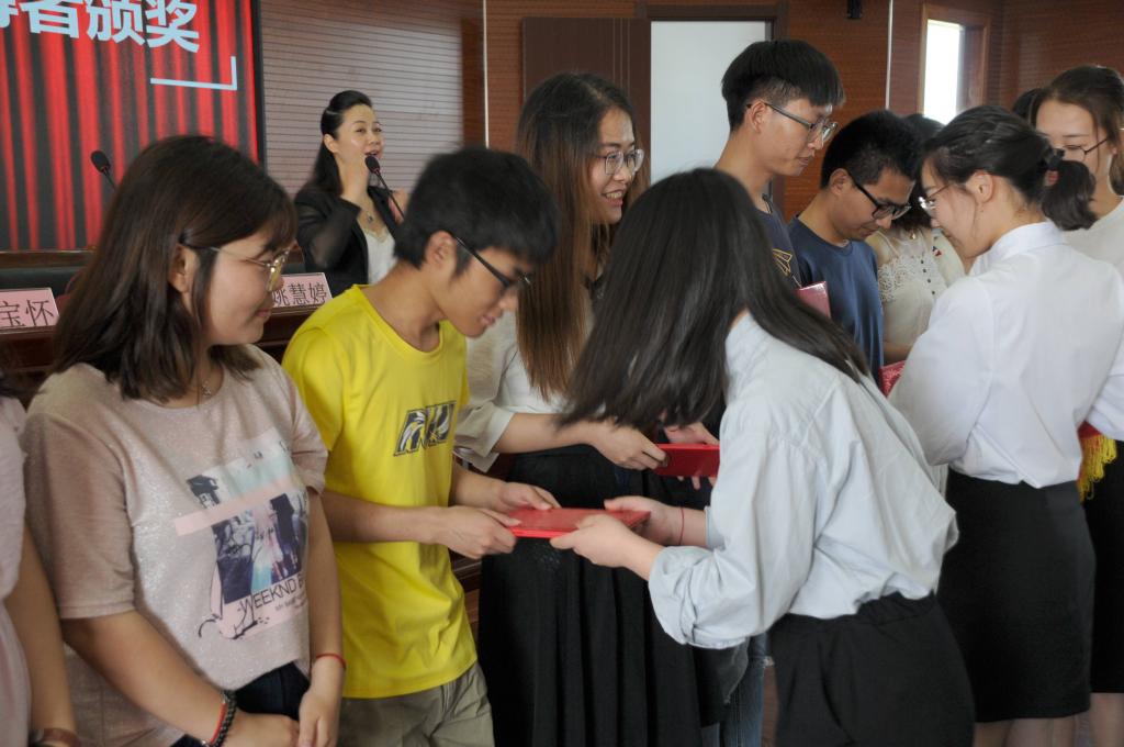)获得者的决定》2份文件,接下来学院副院长方泽波为考研录取学生代表进行了颁奖;学院副院长盛宝怀为优秀考研负责人进行了颁奖;学院党委书记周柳萍给优秀指导教师进行了颁奖;杭州科百特过滤器材有限公司姚慧婷经理为第三届“科百特成长奖学金”一等奖获得者电信142班朱斌达,二等奖获得者微电子141班徐珊瑚、电信141班汪洪晴、电信141班毕一宁,三等奖获得者数学142班孙暄、电信141班夏颖、微电子141班蒋磊、数学142班张静、物理141班周丹、物理141班陈忠兰等10位获奖同学进行了颁奖。同时,学生代表也向姚慧婷经理赠送了纪念品以示感谢。