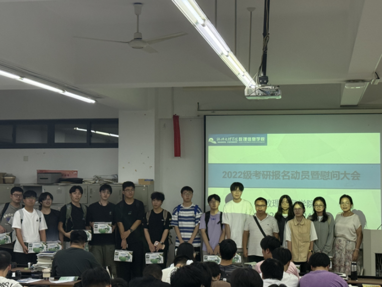 在综合楼以主分会场形式召开2022级考研报名动员暨慰问大会。学院党委副书记郑雅铭、各专业考研团队导师、2022级班主任、辅导员、全体2022级考研学子出席了本次大会。
