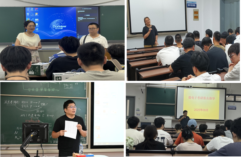 各专业考研导师以分会场的形式为考研学子解答疑惑、分析形势。统计专业考研导师组长缪春芳老师、班主任胡金杰老师提到:同学们要精准分析自己的水平,不要盲目报考自己喜欢的学校,尽量不把机会留给最后的调剂,在考研竞争激烈的当下,对自己的基本要求是第一志愿能进复试;电信专业考研导师组长于梅老师对同学们提出以下几点要求:一是临近考试,大家一定要稳定心态;二是养成不言败的品质,胜利只属于有毅力的人;三是理清做题思路,培养习惯为考研冲刺;微电子专业考研导师组长徐海涛老师分析了各院校专业简章,提醒大家注意考纲变化、报名节点、核对报名信息,在第三轮复习阶段要训练真题,查漏补缺,在第四轮复习阶段注重背政治和做预测卷。报考的学校,着重冷静地思考,参考学长学姐上岸的学校;数学专业考研导师组长张永帅老师分析了数学专业近些年的考研情况及形势,鼓励学生们考研向更好的平台奋进,但是一定要结合自身的复习情况,报考合适的目标院校。