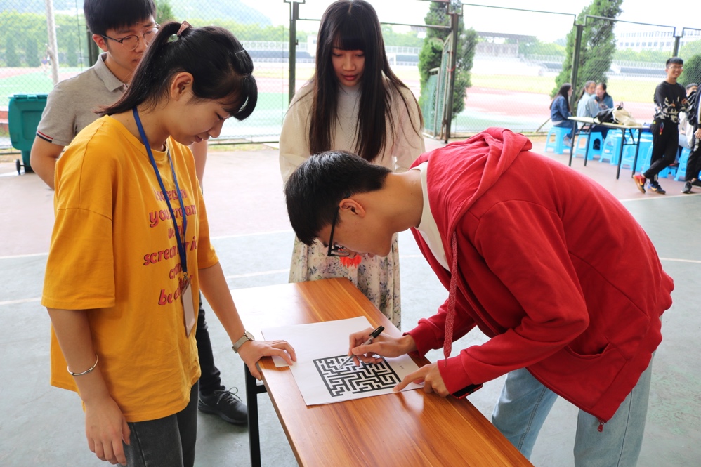 此次比赛由大一至大三初赛晋级的九个班级各派出三名优秀代表组成参赛人员。相较于以往比赛书面答题的形式,本次活动结合游戏与答题组织比赛。游戏分为三个关卡:指压板蛙跳,踢毽子以及走迷宫,每个关卡完成后回答班级建设条例,完成三个关卡总用时最短者胜出。活动中,参赛者都十分活跃,团队成员之间表现出高度的默契,齐心协力完成比赛。同时工作人员尽职尽责,较好地维持了现场秩序。最终,趣味知识竞赛圆满落幕。