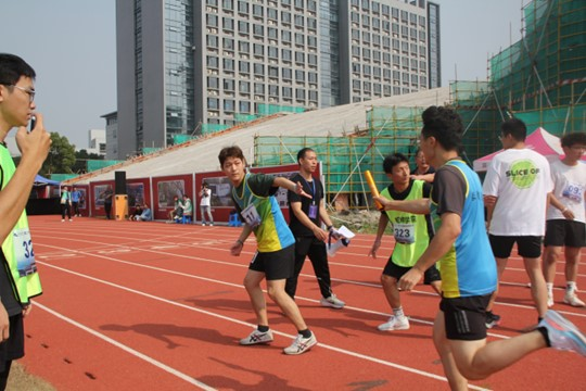 握紧接力棒,跑好接力赛。接力赛的角逐比较的不仅是速度、耐力,更是队友间的默契与配合。一根小小的接力棒,寄托着每位运动员不服输的意志。他们将在一棒接一棒的传递中冲向终点。加油,运动健儿们!