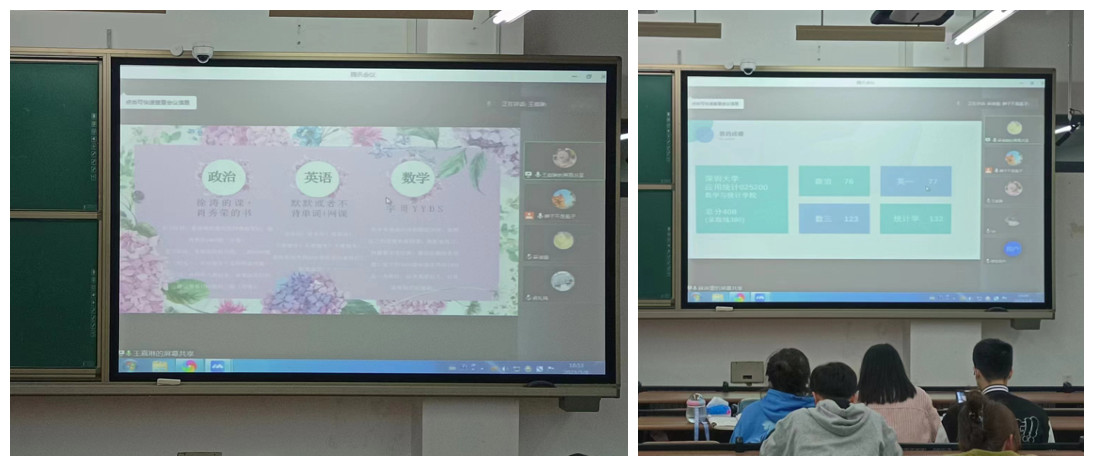 3月8 日晚6:30,已考取南京审计大学应用统计学专业研究生原统计181班王嘉琳、已考取深圳大学应用统计学专业研究生原统计181班麻淑蕾在线上进行经验分享。王嘉琳同学从院校选择、学习资料推荐、学习方法、寻求自适四个方面讲解自己的经验。她首先强调择校方面要综合自己的个人能力,量力而行,要了解学校的研究生实力、就业前景、学科实力等。考研是一场信息战,她为学弟学妹推荐了一些网站资料和各类公众号,分享了自己的心得感悟,同时强调备考期间情绪的重要性,要学会调节自己的心态情绪;麻淑蕾同学从择校、公共课专业课等方面讲解自己经验。她首先介绍了自己在考研中获得的成绩并向大家讲解自己在备考过程中的关注重点与不足,在择校上介绍了三个主要考研选择:应用统计学(专硕)、统计学(经济学学硕)、统计学(理学学硕),并分析了其中的优缺点。而后介绍了自己在专业课与公共课上的时间分配以及复习经验。