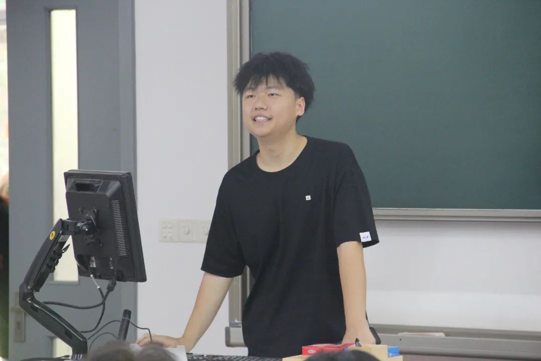 第五位是纪检部部长莫昊东,他向大家讲解了纪检部这个和谐的大家庭,并秀出了纪检部的“族谱”。第六位宣讲的是科技部部长张浩,他介绍了科技部的日常工作以及科技部特有的“族谱”和“四世同堂”。第七位是青年志愿者协会会长朱常昊,他通过对部门活动和部门特点的介绍,向同学们传递了青年志愿者协会“和平、友谊、团结、奉献”的精神,以及希望同学们能够结合自己想在大学几年里想要提升的地方来选择自己喜欢的部门,让自己的大学生活过得充实且有意义。接下来是实践部部长陈睿宇,他点出实践部作为学院科学技术协会两大部门之一,具有近距离接触到未来创就业以及唯一一个代表学院与外界商家进行对接交流的特点。