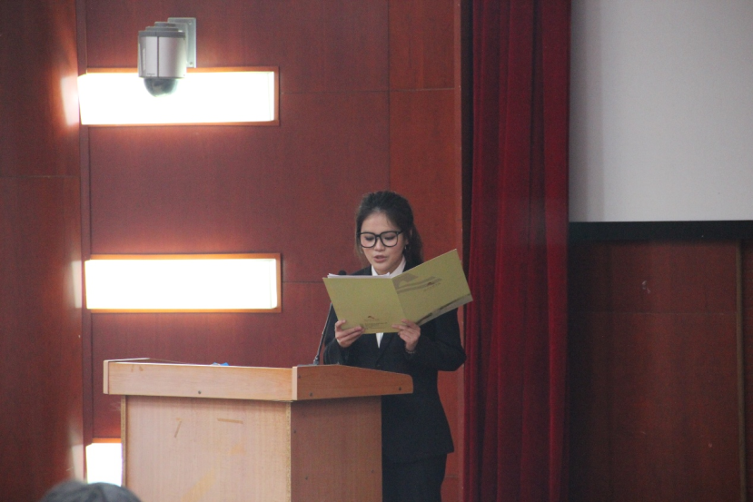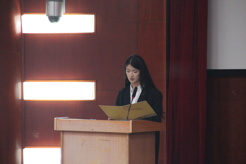 在大会正式开始之前,进行了预备会议,分团委副书记郑茜月做学生委员会工作报告、代表资格审查报告、候选人资格审查报告,均鼓掌通过。预备会议结束之后,随着庄严神圣的国歌声,正式会议拉开序幕,分团委副书记叶雨俊做《色花堂