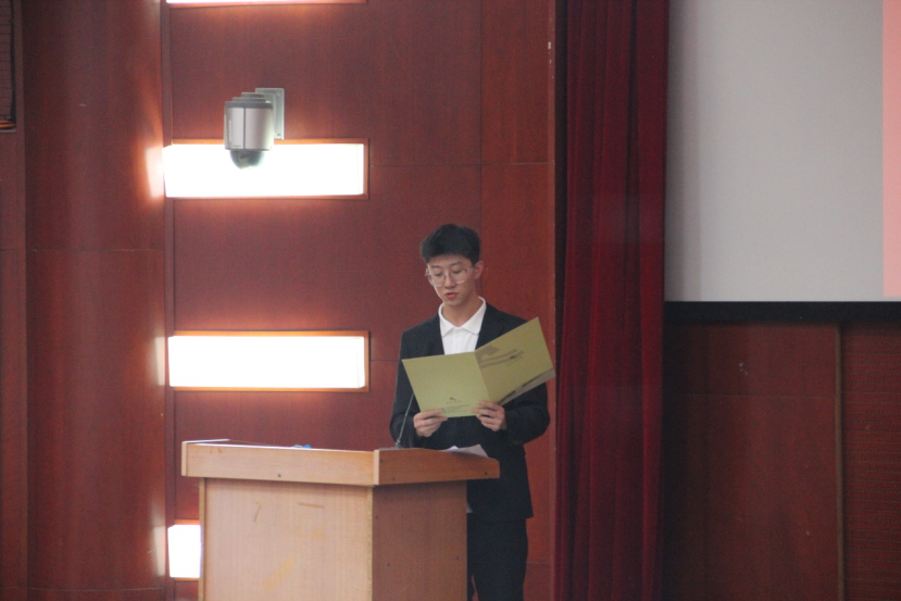 第二十一届学生委员会工作报告》。胡宇轩进行了完整的工作回顾,道出目前学生会工作存在的挑战,最后提出工作设想。由衷希望新一届学生委员会全体成员能发扬吃苦耐劳的精神,精心组织、积极开展各类品牌活动,打造出我们色花堂