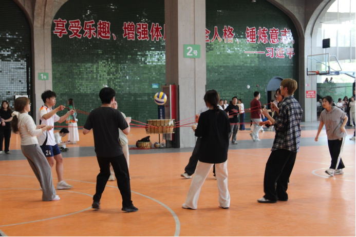 紧接着开始的是集体跳大绳项目,是一场团队合作与挑战极限的角逐。同学们同时起跳,在长绳下,展现出完美的团队默契与力量。同学们配合彼此的节奏,每一次跳跃,都是对团队合作精神的赞颂,更是对青春活力的鲜明释放。同学们使出浑身解数,尽量地在控制住自己身体平衡的同时,让跳动的频率达到最大。挥舞的长绳,悦动的精灵,每个人心中都秉持着为学院增光添彩的信念!最终获得了第四名的好成绩!