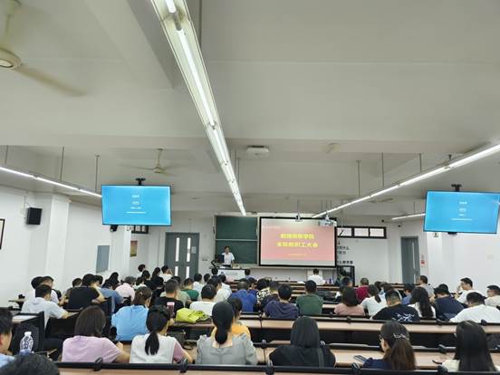 9月27日,学院在南山校区6号楼A406教室召开新学期全院教职工大会暨本科教育教学审核评估工作部署会,传达学校相关会议精神,学院党政领导班子及全体教职工参加会议,会议由学院党委书记史正东主持。