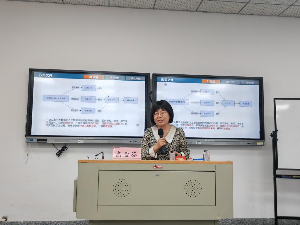 邀请浙江理工大学高雪芬教授开展讲座,主题为“AI赋能、走向国际的课程改革实践:以高等数学课程为例”,吸引众多教师参与。